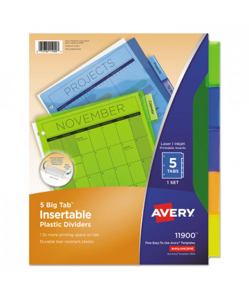 Insertable Big Tab Plastic Dividers, 5-Tab, 11 x 8.5,...