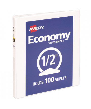 Economy View Binder with Round Rings , 3 Rings, 0.5"...