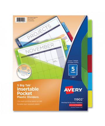 Insertable Big Tab Plastic 1-Pocket Dividers, 5-Tab,...
