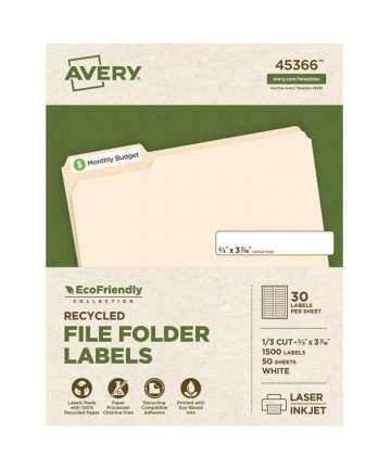 Add to cart EcoFriendly Permanent File Folder Labels, 0.66 x 3.44,... $70.45 Made of 100% recycled material, processed Chlorine Free and printed using soy based ink. Labels and packaging are recyclable as part of paper...