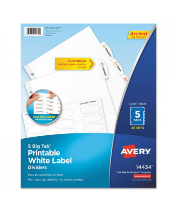 Add to cart Big Tab Printable White Label Tab Dividers, 5-Tab, 11 x... $81.92 Arched shaped tabs and labels. No inserts needed. Use Easy Peel® labels with Pop-up Edge® for fast, easy tab labeling. Print in black & white...