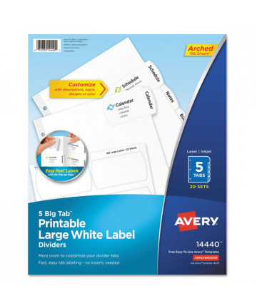 Add to cart Big Tab Printable Large White Label Tab Dividers, 5-Tab,... $84.91 Large labels extend from the tabs onto each divider body-more room to fit content, logos or graphics on your tab labels. Easy Peel® labels with the...