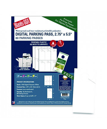 Add to cart Micro-Perforated Parking Pass, 110 lb Index Weight, 8.25... $122.65 Designed for printing on with digital equipment. Made of durable 7 mil digital polyester, making them weather and tear resistant. These blank...