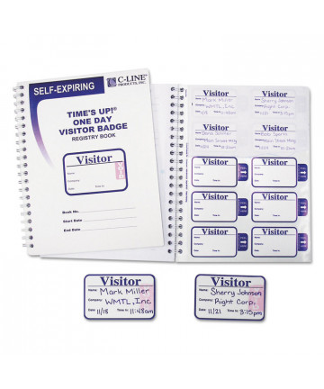 Add to cart Time's Up Self-Expiring Visitor Badges with Registry Log,... $123.09 Guests sign registry book to get their one-day badge and provide a written record of visiting your facility. Carbonless copy of each badge is kept...
