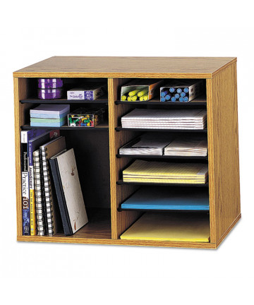 Add to cart Wood/Fiberboard Literature Sorter, 12 Compartments, 19.63... $135.00 Shelves are adjustable or removable to customize compartments. Ten hardboard shelves form up to twelve 9w x 11 1/2d x 2 3/8h letter-size...