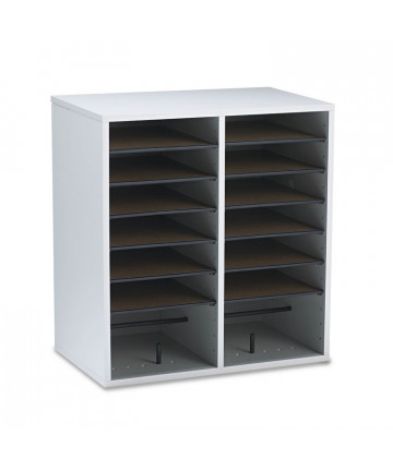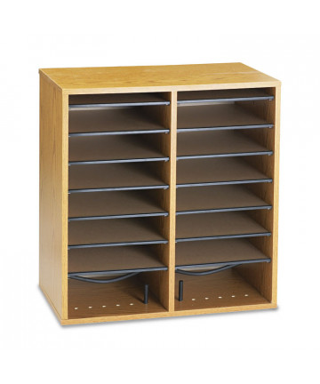 Add to cart Wood/Laminate Literature/CD Sorter, 16 Compartments, 19.5... $222.00 Cabinet is 5/8" compressed wood with laminate finish. Shelves form 9"w x 11 1/2"d x 2 1/4"h letter-size compartments, adjustable in 2 1/2"...