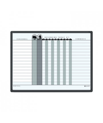 Add to cart Employee In/Out Board System, 15-Person Tracking, 24" x... $313.28 Easily track the status of employees' whereabouts on this ultra-durable, ultra-smooth DuraMax® porcelain surface that will not scratch, dent, stain...