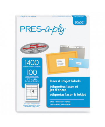 Add to cart Labels, Laser Printers, 1.33 x 4, White, 14/Sheet, 100... $60.17 Economical PRES-a-ply® labels can be used for almost every addressing and identification need. Great for high-volume, low-cost printing. 8 1/2" x...