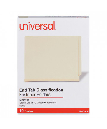 Add to cart Manila End Tab Classification Folders, Straight Tab,... $84.64 18 pt. covers feature 2" capacity fasteners on interior front and back. Two 15 pt. dividers with 1" capacity fasteners on both sides. Tear...