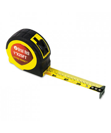 Add to cart ExtraMark Power Tape, 1" x 25 ft, Steel, Orange/Black $11.84 Tape measure features fractional marks to make measuring easy. Rubberized cover. Positive lock holds blade. Includes belt clip.