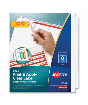 Add to cart Print and Apply Index Maker Clear Label Dividers, Extra... $12.93 Clear labels virtually disappear on divider tabs giving a printed-on look. Label all tabs at once using the Easy Apply label strip. Great for...