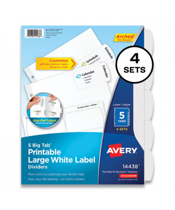 Add to cart Big Tab Printable Large White Label Tab Dividers, 5-Tab,... $20.37 Large labels extend from the tabs onto each divider body-more room to fit content, logos or graphics on your tab labels. Easy Peel® labels with the...