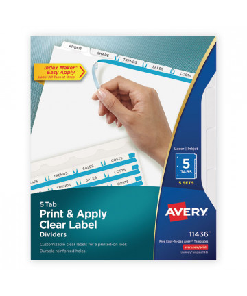 Add to cart Print and Apply Index Maker Clear Label Dividers, 5-Tab,... $42.76 Clear labels virtually disappear on divider tabs giving a printed-on look. Label all tabs at once using the Easy Apply label strip. Great for...
