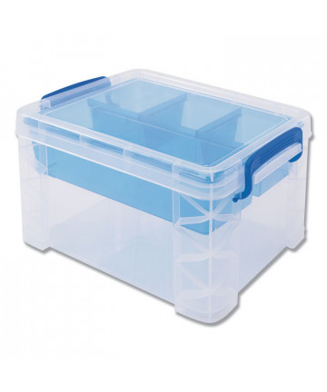 Add to cart Super Stacker Divided Storage Box, 5 Sections, 7.5" x... $17.88 Sturdy Super Stacker® boxes with snap-tight lid and handles keep contents secure. Stackable design helps conserve space. Removable divided tray...