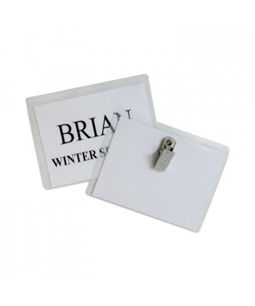 Add to cart Name Badge Kits, Top Load, 4 x 3, Clear, Clip Style, 96/Box $75.80 Kits contain reusable clear PVC-free poly holders and comes with 8.5 x 11 micro-perforated laser/inkjet sheets. Built-in templates in Microsoft®...