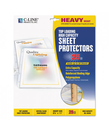 Add to cart High-Capacity Sheet Protectors, Heavy-Duty, Side: 3-Hole... $8.17 Stores up to 50 sheets. Clear, heavyweight polypropylene is acid-free, which eliminates the potential for photocopy transfer. Strong, reinforced...