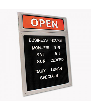 Add to cart Message/Business Hours Sign, 15 x 20.5, Black/Red $56.10 Framed sign is customizable with molded letters and numbers (included). Also includes Business Hours insert.