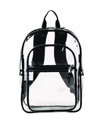 Add to cart Clear with Color Trim Backpack, 11.5" x 5" x 16.5",... $44.00 This is the clear backpack you have been looking for! Ideal for school, sporting events, concerts and airports. Two zippered compartments hold...