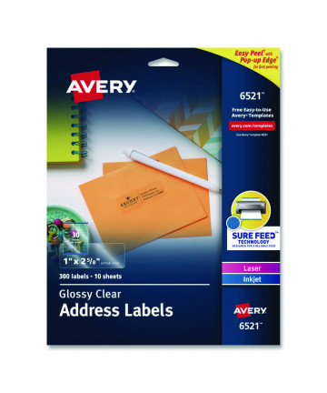Add to cart Glossy Clear Easy Peel Mailing Labels w/ Sure Feed... $26.99 High-gloss clear labels provide a premium, custom-printed look. Ideal for bright colored surfaces. Labels with Sure Feed® technology are designed...