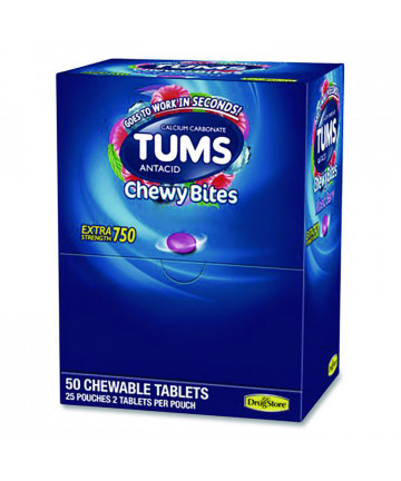 Add to cart TUMS Antacid Chewy Bites, 2 Tablets/Pouch, 25 Pouches/Box $24.50 TUMS Chewy Bites chewable antacids go directly to the source of your heartburn and go to work in seconds to neutralize acid on contact. These...