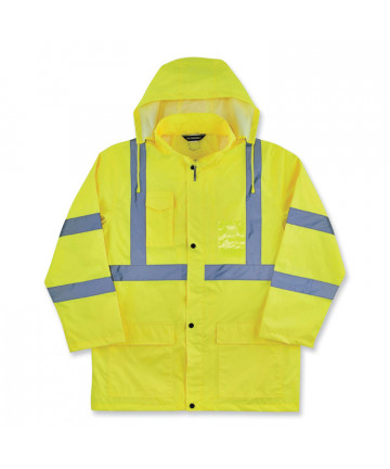 Add to cart GloWear 8366 Class 3 Lightweight Hi-Vis Rain Jacket,... $53.45 This hi-vis rain jacket is designed with waterproof materials (150D polyester oxford with a polyurethane (PU) coating) and fully taped seams for...