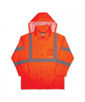 Add to cart GloWear 8366 Class 3 Lightweight Hi-Vis Rain Jacket,... $53.45 This hi-vis rain jacket is designed with waterproof materials (150D polyester oxford with a polyurethane (PU) coating) and fully taped seams for...