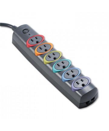 Add to cart SmartSockets Color-Coded Strip Surge Protector, 6 AC... $55.35 Room to easily accommodate up to six adapter-style plugs. Indicator monitors the surge protector to ensure full protection. Color-coded rings with...
