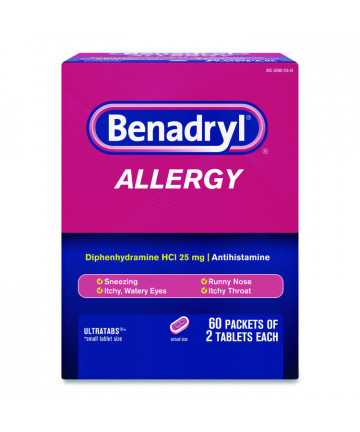Add to cart Allergy Ultratabs Tablets, Two-Pack, 60 Packs/Box $56.15 Get convenient, on-the-go cold and allergy relief in a small antihistamine tablet. Each tablet has 25 mg diphenhydramine HCl to temporarily relieve...