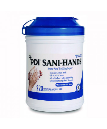 Add to cart PDI Sani-Hands Instant Hand Sanitizing Wipes, 7.5 x 6,... $107.43 Keep clean when it counts - hand sanitizing wipes are clinically proven to kill 99.99% bacteria. Alcohol-based formula contains 65.9% alcohol for...