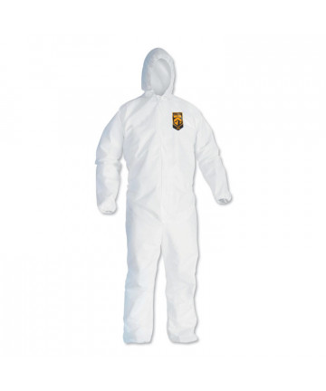 Add to cart A40 Coveralls, White, Large, 25/Carton $368.45 These liquid and particle protection coveralls are made of microporous film laminate with zipper front, flap over zipper and elastic in the back...