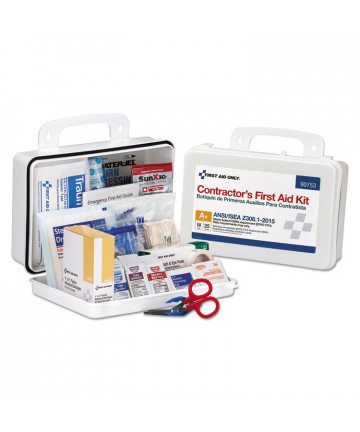 Add to cart Contractor ANSI Class A+ First Aid Kit for 25 People, 128... $59.65 Convenient first aid kit in a weatherproof case. Comes with a carrying handle and is wall mountable. Contents exceed the 2015 ANSI Class A+...