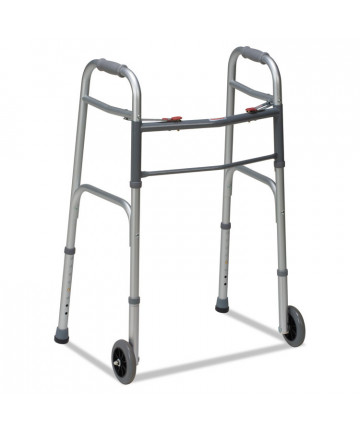 Add to cart Two-Button Release Folding Walker with Wheels, Adjusts... $111.87 Strong, yet lightweight 1" anodized aluminum tubing creates a strong walker without adding excess weight. Steel crossbrace provides additional...