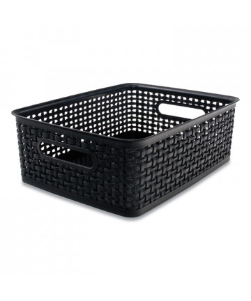 Add to cart Plastic Weave Bin, Medium, 14" x 10.5" x 4.63", Black $13.99 Perfect for storing a variety of office or household supplies. This sturdy plastic bin is easy to clean, features two handles for easy...