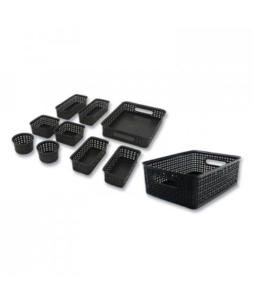 Add to cart Plastic Weave Basket Bins, Assorted Sizes, Black, 10/Pack $26.39 Perfect for storing a variety of office or household supplies. This sturdy plastic bin is easy to clean, features two handles for easy...
