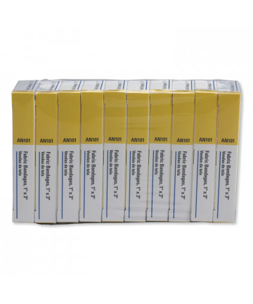 Add to cart First-Aid Refill Fabric Adhesive Bandages, 1 x 3, 160/Pack $32.62 First-Aid refill fabric adhesive bandages. Refill for ANSI-compliant first aid kit.