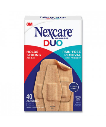 Add to cart DUO Bandages, Plastic, Assorted Sizes, 40/Pack $12.70 No longer compromise between pain-free removal or a bandage that stays in place until you're ready to remove it. Flexible fabric strips conform to...
