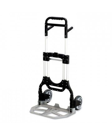 Add to cart Stow-Away Heavy-Duty Hand Truck, 500 lb Capacity, 23 x 24... $689.00 Lightweight aluminum frame. Folds flat for compact storage. Features telescoping handle, retractable wheels and fold-up toeplate. Solid rubber tires.