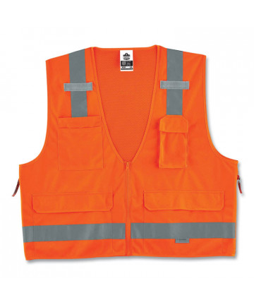 Add to cart GloWear 8250Z Class 2 Surveyors Zipper Vest, Polyester,... $23.95 Pockets, pockets, pockets! Vest with solid front, mesh back and zipper closure. Two inside and four outside pockets. One large zippered rear...
