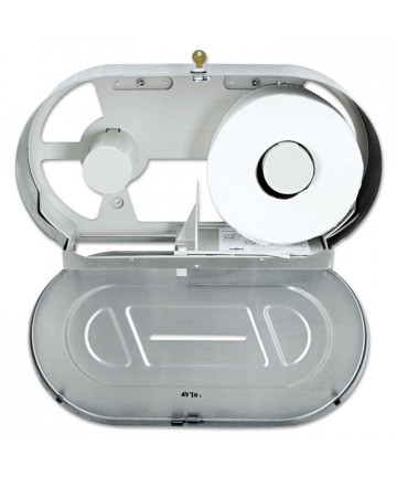 Add to cart Stainless Steel Two-Roll Jumbo Toilet Tissue Dispenser,... $456.15 Jumbo toilet paper dispenser holds two rolls of 10-inch diameter, which makes it great for high-traffic areas. Sliding panel on the bottom exposes...