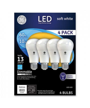 Add to cart LED SW A19 Dimmable Light Bulb, 10 W, Soft White, 4/Pack $26.25 The LEDs offer outstanding energy efficiency, long-lasting performance and just-right brightness, all in one package. They're dimmable and...