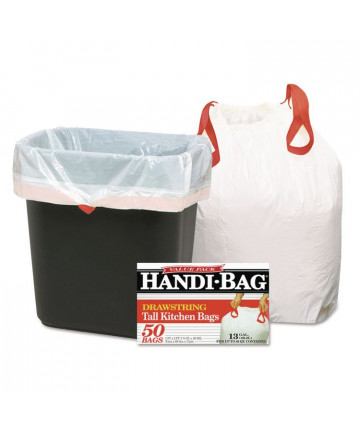 Add to cart Drawstring Kitchen Bags, 13 gal, 24" x 27.4", White, 50... $138.17 Drawstring closure on bags keeps everything clean and free from trash. Linear low density resin for greater stretch and puncture resistance. Comes...