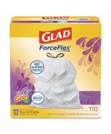 Add to cart ForceFlex Tall Kitchen Drawstring Trash Bags, 13 gal,... $51.16 Help keep your kitchen clean and fresh with Glad ForceFlex trash bags, designed to carry heavy loads without rips, leaving a refreshing scent.