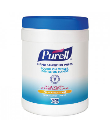 Add to cart Sanitizing Hand Wipes, 6.75 x 6, Fresh Citrus, White,... $211.97 All of the germ-killing benefits of PURELL brand hand sanitizer in a non-linting, durable hand wipe. Providing PURELL hand wipes in your office or...
