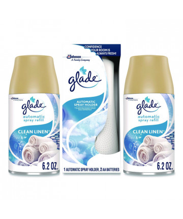 Add to cart Automatic Air Freshener, Clean Linen, 6.2 oz Can, 4/Pack $41.31 Pleasant fragrance. Refills last up to 60 days based on 36 minute setting. Fits Glade automatic dispenser.