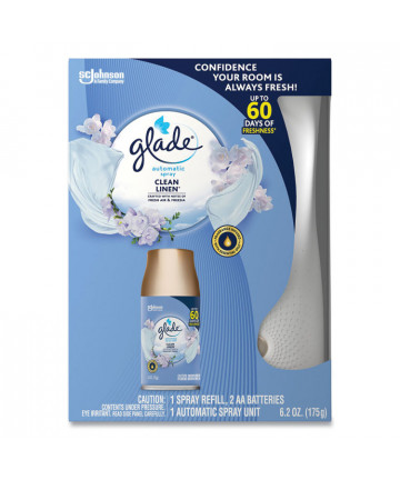 Add to cart Automatic Air Freshener, Clean Linen, 6.2 oz, 6/Carton $58.05 Pleasant fragrance. Refills last up to 60 days based on 36 minute setting. Fits Glade automatic dispenser.