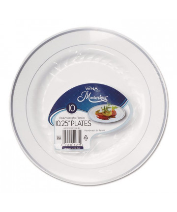 Add to cart Masterpiece Plastic Plates, 10.25" dia, White/Silver,... $438.42 Masterpiece™ dinnerware is made from heavyweight, durable plastic. Provides an excellent alternative to hand-painted china, removing the problems...