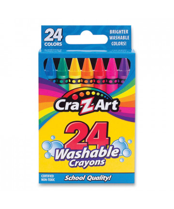Add to cart Washable Crayons, Regular Size, 24 Assorted Colors, 24/Pack $4.49 School quality washable crayons feature smooth drawing and vibrant colors. Washes easily from skin and most children's fabrics. Certified non-toxic.