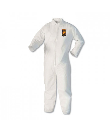 Add to cart A40 Coveralls, Elastic Wrists/Ankles, X-Large, White $241.96 These liquid and particle protection coveralls are made of microporous film laminate with zipper front, flap over zipper and elastic in the back...