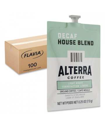 Add to cart Alterra Decaf House Blend Coffee Freshpack, 100/Carton $85.31 This carefully crafted blend of light roasted beans gives a medium bodied, smooth flavor. Our brewing process, where nothing touches the...