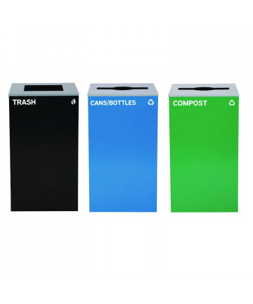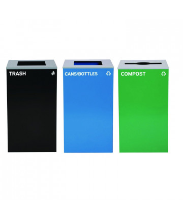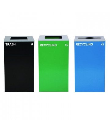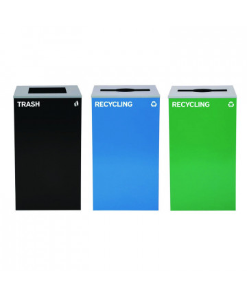 Add to cart 29 Gallon Trash/Recycling Cans, Steel, Blue Cans/Bottles... $1,819.85 This generous capacity bin is perfect for use in any environment - from homes to offices, schools, and more. It can handle high-volume foot traffic...